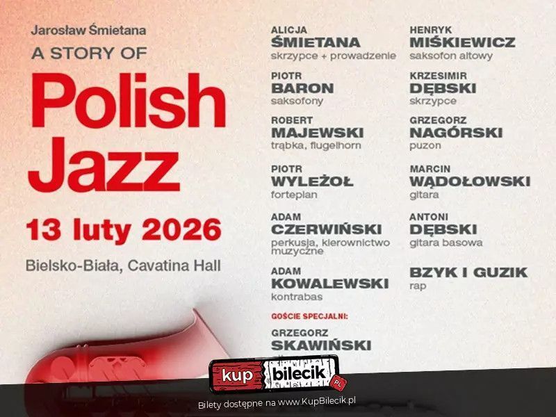 Oficjalnie: 13 luty stanie się ważną datą dla wszystkich fanów jazzu! Tego dnia w Cavatina Hall w Bielsku Białej odbędzie się koncert "A Story of Polish Jazz". Unikatowa podróż po dźwiękach polskiej sceny jazzowej w wykonaniu nazwisk, które zapewne każdy miłośnik jazzu zna. Z wielką przyjemnością zapraszamy Państwa na pierwszy taki koncert w Cavatina Hall!