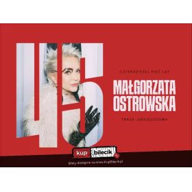 bilety: Małgorzata Ostrowska, legenda polskiej piosenki, zaprasza na jubileuszowe koncerty z okazji 45-lecia pracy artystycznej! Jedna z największych ikon polskiej muzyki rockowej, właścicielka rozpoznawalnego od pierwszych dźwięków głosu, idąca zawsze własną drogą artystka bezkompromisowa - taką ją uwielbiamy i z taką spotkamy się ponownie na żywo w 2026 roku. Rocznicowa trasa przeprowadzi nas przez wszystkie etapy kariery artystki: od drapieżnych i kolorowych lat 80. przez dojrzałą solową twórczość, aż po ostatnie dokonania, w tym doskonale przyjętą płytę "Legenda", na której artystka wróciła do swoich muzycznych korzeni. Każdy z koncertów będzie okazją do wspomnień, wzruszeń, ale też wspólnej zabawy kilku pokoleń słuchaczy, które wychowały się na piosenkach takich jak Meluzyna, Szklana pogoda, Gołębi puch, Mam dość, Taniec pingwina na szkle czy Mister of America. Do zobaczenia w magicznej Cavatina Hall. Bilety do nabycia na: KupBilecik.plMałgorzata Ostrowska artyści: Małgorzata OstrowskaMałgorzata Ostrowska jest niekwestionowaną ikoną polskiego rocka lat 80"tych. Popularność zdobyła jako wokalistka zespołu Lombard, z którym zagrała ponad tysiąc trzysta koncertów w całej Polsce i poza granicami kraju (w USA, RFN, ZSRR, Holandii, Czechosłowacji, Szwecji, dawnej Jugosławii, Iraku, na Węgrzech i we Włoszech), nagrała dziesięć płyt, z których trzy uzyskały status "Złotej Płyty", a także wylansowała kilkanaście przebojów (takich jak m.in. "Szklana pogoda", "Droga Pani Telewizji", "Taniec pingwina na szkle", "Mister of America", "Znowu radio", "Mam dość" czy "Meluzyna"). Koncerty jazzowe na Festiwalu "Jazz Jamboree", rola Królowej Aby w filmie "Podróże Pana Kleksa", rola Marii Magdaleny w polskiej wersji rock-opery "Jesus Christ Superstar" z 1987 roku, a później tytułowa rola w musicalu "Pocałunek Kobiety-Pająka" to kolejne etapy kariery, które uczyniły z niej niezwykle intrygującą, nieszablonową artystkę estradową. Bilety do nabycia na: KupBilecik.pl |